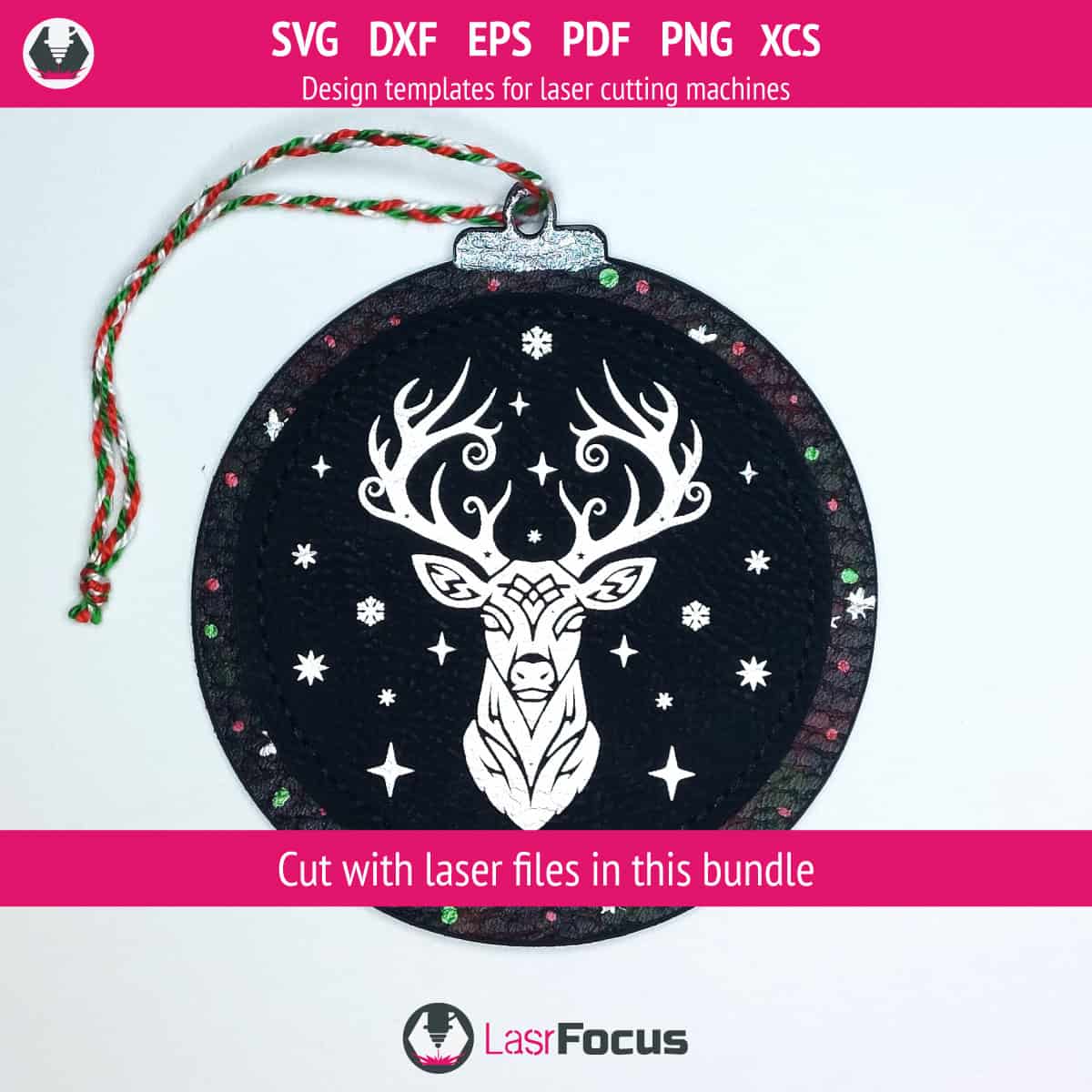 You’ll get the free reindeer Christmas ornament laser cut and engrave file shown in the preview photo, combined in a .zip file that includes the following formats: